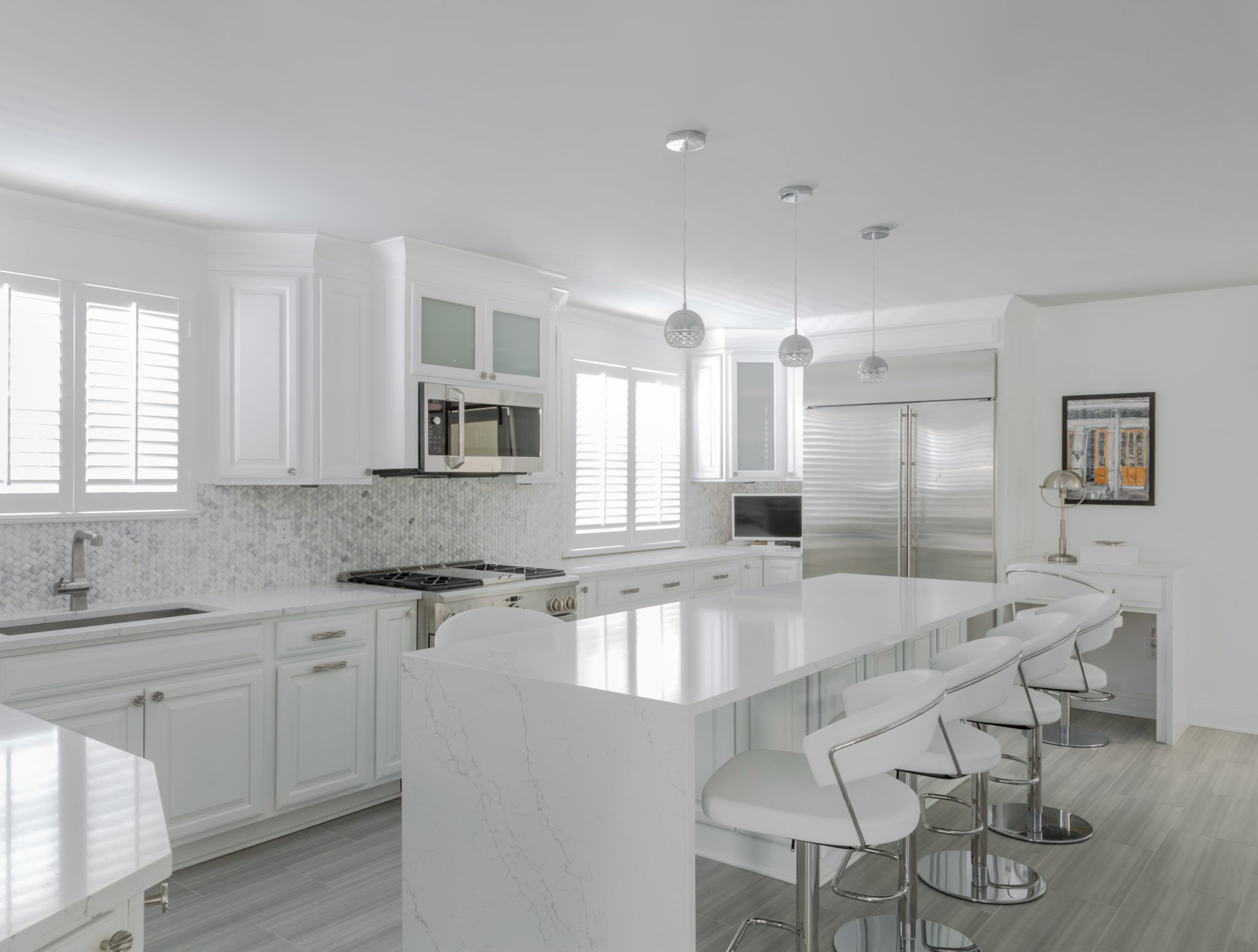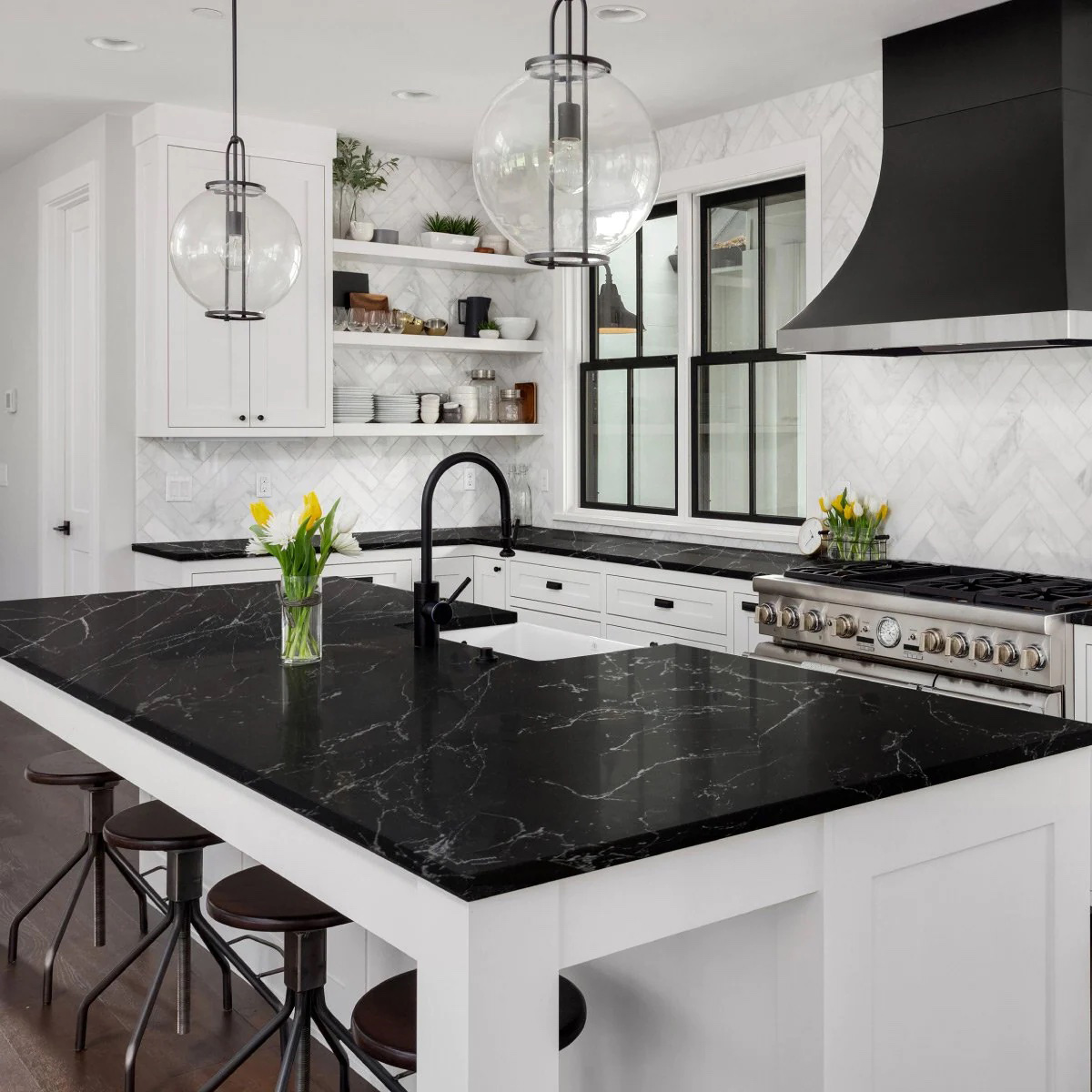 Whether you're drawn to the classic look of white marble countertops or the bold and striking black granite, we have the perfect option for you. Our collection of quartz kitchen countertops includes stunning white and colored options, offering a durable and low-maintenance choice for any kitchen. Explore our gallery today to find your dream kitchen countertop.